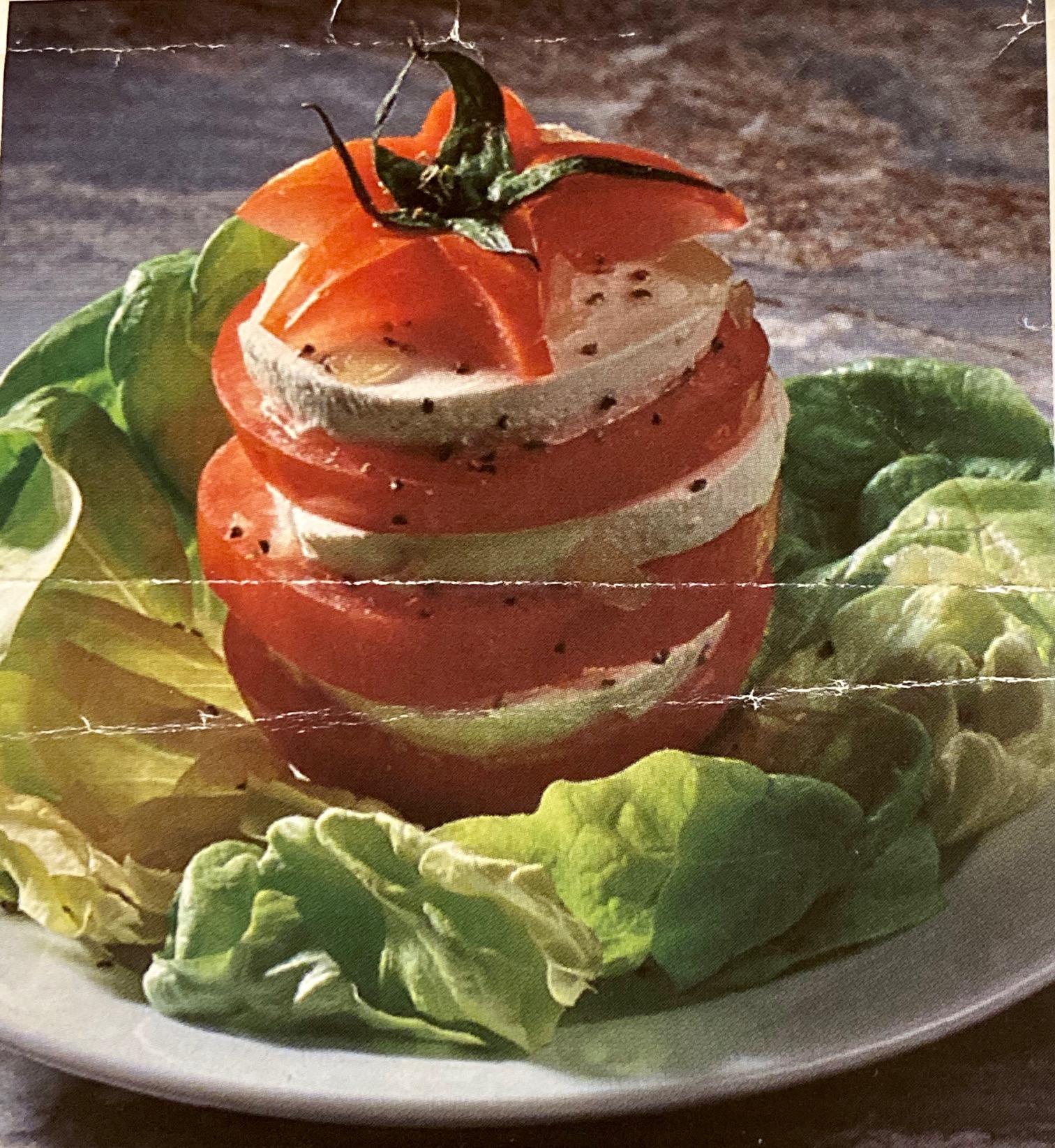 Stacked slices of tomato and fresh mozzarella served on bibb lettuce leaves and drizzled with roasted shallot balsamic vinaigrette.