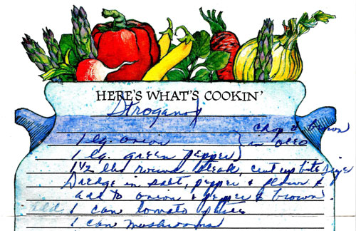 Dredge round steak pieces in mixture of flour, salt and pepper; add to skillet with onion and peppers and brown.