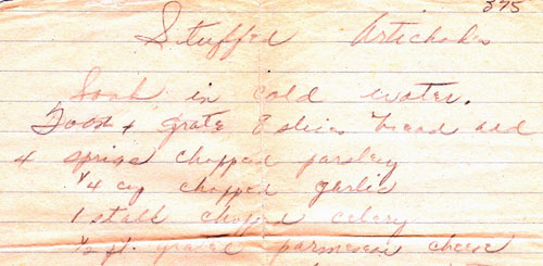 Fresh artichokes stuffed with bread crumbs, parmesan, celery, and seasonings.
