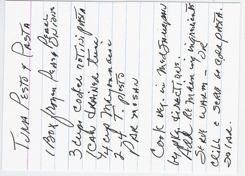 This dish with tuna, pasta, pesto, peas and onions can be served warm or chilled and served as a cold pasta salad.