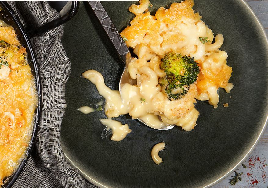 To make the sauce, heat 2 cups of the almond milk in a medium saucepan, stirring often until steaming hot. Whisk together the remaining ½ cup almond milk, flour, and 3/4 tsp salt until smooth. Whisk this flour mixture into the heated milk and bring to a simmer, continuing to whisk until thickened. Remove from the heat and stir in the cheddar and half of the parmesan.
